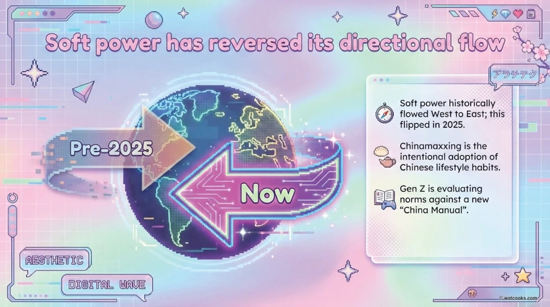 “Chinamaxxing” describes the intentional adoption of Chinese lifestyle habits, aesthetic standards, and digital behaviors by non-Chinese populations, primarily Gen Z and late Millennials. It’s not just Y2K fascination.